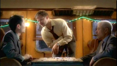 ![]() Als het lichaam gedumpt is, blijken andere reizigers echter ook interesse in het kistje te tonen. Niet veel later staat de politie op de stoep, op zoek naar degenen die een lichaam uit de trein hebben gegooid. Ook komt een vriend van de dode man verhaal halen bij de treinreizigers. Als dan ook nog blijkt dat de reizigers elkaar en zichzelf niet meer kunnen vertrouwen zijn de rapen echt helemaal gaar. Ieder strijdt nu voor zichzelf met als doel het kistje te bemachtigen. Maar wat zit er nou eigenlijk echt in dat kleine doosje? ![]() Night Train is een beetje vreemde film. Vrijwel niet bekend bij het grote publiek, voor zover ik weet geen brede release gehad, en met een cast van niet onaardige, doch redelijk anonieme acteurs in de hoofdrollen. Het verhaal is al minstens zo vreemd, maar werkt zeer aanstekelijk door de snelheid waarmee het vertelt wordt en de vele plotwendingen die zich tegen het einde op stapelen. Allerlei figuren die geen rol blijken te spelen binnen de plot blijken er een eigen agenda op na te houden. Niet allen hiervan zijn even sterk uitgewerkt, maar een aantal verhaallijnen zijn redelijk origineel te noemen en zie je van tevoren niet aankomen. ![]() Hoewel de cast voornamelijk Amerikaans is, bevat de aftiteling veel Roemeense namen. Night Train is dan ook in Oost-Europa opgenomen, hetgeen je overigens in de film niet terug ziet. De enige beelden zijn namelijk het interieur van de trein. Grafisch oogt deze prent daardoor een beetje saai, ook omdat de treinbewegingen niet goed in beeld worden gebracht. Maar al met al is hier zeker sprake van een leuk en verrassend werkje. De korte speelduur mag daarbij bovendien als een pluspunt worden gezien, de verveling slaat namelijk nooit toe.
