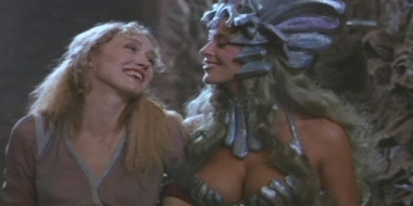 ![]() Battle Beyond the Stars is een low-budget science fictionfilm van Roger Corman, die in 1983 nog een officieus vervolg zou krijgen met Space Raiders. Het verhaal van eerstgenoemde film is gebaseerd op het beroemde The Magnificent Seven (1960) dat in zichzelf weer een westerse verfilming is van het Japanse The Seven Samurai (1954). De overeenkomsten met deze films focussen zich met name op het feit dat er een groep van zeven outcasts moet vechten tegen een grote tegenstander. De special effects van Battle Beyond the Stars zijn overigens gemaakt door James Cameron. Niet dat je dat terug kunt zien, maar daarover zometeen meer. ![]() Na het verschijnen de eerste Star Wars film in 1977 kon het niet uitblijven dat anderen op de trein van deze succesvolle franchise zouden springen. Aldus geschiedde en Battle Beyond the Stars zag het levenslicht. Wat deze film echter ontbeert is een sterke regisseur, iets wat er mede voor heeft gezorgd dat Star Wars zo'n goede film is geworden. Het is duidelijk dat Roger Corman geen George Lucas is. Zo is de casting niet bepaald sterk te noemen, zijn de special effects achterlijk slecht (de decors zouden overigens nog voor veel films hergebruikt worden), en heeft het verhaal niet voldoende epische kracht om langdurig te kunnen boeien. Toch kan The Battle Beyond the Stars een zekere charme niet ontzegd worden en heb ik er met plezier naar gekeken. ![]() Ten slotte wil ik je een aantal geinige elementen niet onthouden. Ooit een ruimteschip met tieten gezien? In Battle Beyond the Stars vliegt het in het rond. Hoe bedenk je het? Over tieten gesproken, actrice Sybil Danning beschikt over een behoorlijke voorgevel. Naar verluid was haar pakje in deze film zo strak, dat haar borsten met tape in het gareel moesten worden gehouden. Bekende gezichten zijn er ook genoeg te zien. Wat denk je van George Peppard, a.k.a. Hannibal uit The A-Team, die hier de rol van Space Cowboy speelt. Ook te zien is Robert Vaugn, die in The Magnificent Seven de rol van Lee speelde, wat bijna hetzelfde karakter is als Gelt die hij hier speelt.