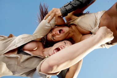 ![]() Tegenwoordig staat het subgenre weer redelijk in de belangstelling. Quentin Tarantino en Robert Rodriguez hebben er met hun combifilm Grindhouse de nodige impuls aan gegeven. Met wisselend succes, maar dat terzijde. Met de actiefilm Bitch Slap wordt ook een bijdrage aan de herleving van het genre gegeven. Centrale ingrediënten zijn ook hier babes, boobs and guns. ![]() Bitch Slap opent met een drietal vrouwen (Hel, Trixie en Camero) in de woestijn die op zoek zijn naar een voorwerp dat ergens bij een trailer begraven ligt. Onduidelijk is wat ze precies zoeken, maar met behulp van flashbacks wordt langzaamaan een tipje van de sluier opgelicht. Er zijn echter ook andere kapers op de kust, zoals een duo criminelen dat nog een appeltje met de dames te schillen heeft. Ook een politieagent blijkt een rare verhouding met een van de dames te hebben en dringt zichzelf op. Het moeilijkste lijken de dames het echter met zichzelf te hebben: ze vertrouwen elkaar namelijk voor geen meter en hebben allen een eigen agenda. ![]() Bitch Slap heeft het hart op de goede plaats zitten en heeft een aantal goede vindingen. Zo is er ruimte voor -weliswaar erg flauwe- de nodige humor en is actie ruimschoots aanwezig. Schietpartijen en vuistgevechten vormen een integraal onderdeel van deze film en het is natuurlijk leuk dat het een keer vrouwen zijn die elkaar flink te grazen nemen. Een aantal scènes grenzen bijna aan het memorabele en zullen de kijker een tijdje bijblijven. Misschien niet het juiste voorbeeld hiervan, maar wanneer de drie hoofdrolspeelsters midden in de woestijn een watergevecht met elkaar hebben, zie je een exemplarische scène uit deze actieprent. ![]() Toch is Bitch Slap niet de exploitation-tribute die het had kunnen zijn. Dit komt vooral doordat het geheel te gestilleerd overkomt. Er is duidelijk een aardig budget beschikbaar geweest voor de camera's en de editing achteraf. Ook is er flink geld aan de effecten besteed. Hierdoor is het gevoel naar echte exploitation te zitten kijken een stuk minder aanwezig. Ook is het acteerwerk behoorlijk slecht te noemen, maar niet van een dermate laag niveau dat het weer humor wordt. Jammer is bovendien dat er gekozen is voor een behoorlijk kuize uitvoering. Er wordt geen bloot getoond en bloed vliegt te weinig in het rond. Dat is toch echt een gemis te noemen in deze film. Ten slotte ben ik van mening dat er te veel leentjebuur is gespeeld bij films als Smokin' Aces en Lucky Number Slevin. Toch is Bitch Slap een prima filmpje om een keer op te zetten. Al is het maar voor de bouncy boobs van de gun-handling babes.