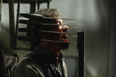 ![]() Het is dat ie op televisie was en het is dat ik de bewuste avond wel behoefte had aan wat eenvoudig vermaak. Anders had ik deze film nooit gegeken en was er ook geen recensie gekomen van Saw III. Mijns inziens is deze reeks namelijk al erg lang over zijn houdbaarheidsdatum heen. Van een inventief plot is na de eerste film al afscheid genomen. Daardoor zijn vrijwel alle vervolgen slechts opeenstapelingen van martelwerktuigen waarin mensen om het leven komen, gemixt met wat elementen uit de politiethriller. ![]() Zo ook met dit vierde deel uit de reeks. Veel bloed, veel gemartel en veel gestuntel aan de kant van de politie die steeds te laat is. Wat opvalt is de matige kwaliteit van de opnames, waardoor deze horror vaak meer op een serie lijkt dan op een speelfilm. Ook storend zijn de 'smoeshende' en 'spruttelende' geluidseffecten elke keer wanneer er bloed in beeld verschijnt. Het is bijna lachwekkend, ware het niet dat de Saw-reeks zichzelf zo enorm serieus neemt. Verder wat die martelingen betreft beeld die op het plaatje hierboven de meest interessante uit de film uit. De man in kwestie moet met zijn hoofd door de mensen heen bewegen -en zijn gezicht dus volledig opensnijden- om uit een apparaat te kunnen ontsnappen. ![]() Persoonlijk had ik al lang genoeg van deze reeks en daarom is het wellicht makkelijk hier een onvoldoende aan uit te delen. Toch verwacht ik niet dat de echte horrorliefhebber veel kan halen bij deze film. Als je een echte Saw-fan bent dan kun je misschien wel een puntje bij mijn eindoordeel optellen. Ook als je liefhebber bent van martelporno kun je dat doen: Saw IV is namelijk beter dan veel van de rommel die er verder in dit genre uitkomt.
