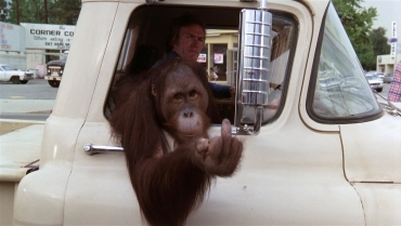 Het komt voor ma dan ook goed uit dat Philo hoteldebotel is van een doortrapt countryzangeresje die denkt dat ze het helemaal gaat maken. Philo snapt namelijk de hint niet dat zij hem niet wil en reist samen met Clyde en broer Orville het hele land door om haar te vinden. Het reisgezelschap wordt hierbij achtervolgd door een achterlijke motorbende en een duo smerissen. Zowel de bikers als de agenten zijn namelijk door Philo inelkaar gemept en willen hiervoor wraak... ![]() Goeie ouwe Clint draaft in Every Which Way But Loose op om te worden weggespeeld door een aap. Dit is meteen het grappigste gegeven aan deze komedie. Er valt wel meer te lachen, daar niet van. De grappen zijn echter dungezaaid en van een bedenkelijk niveau.